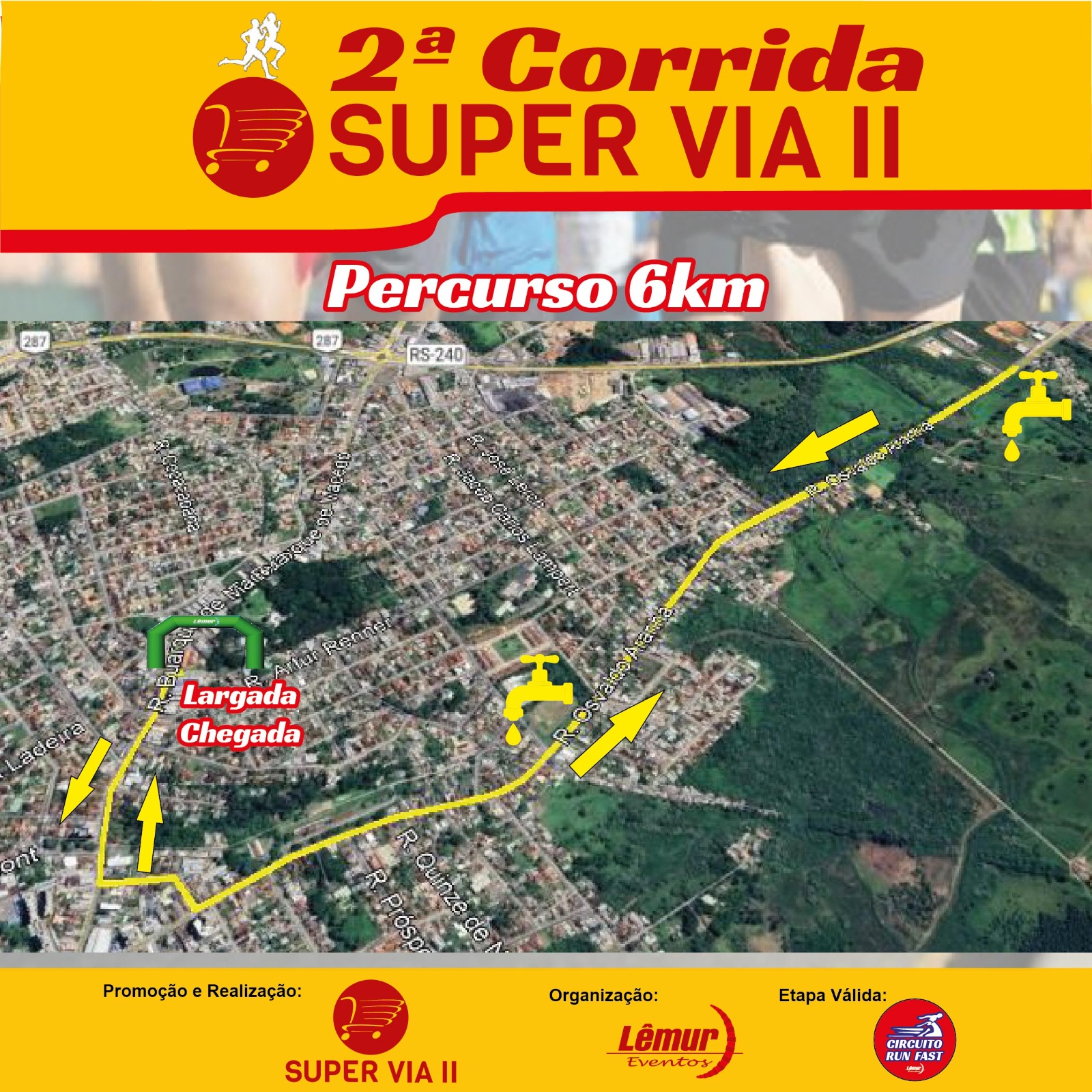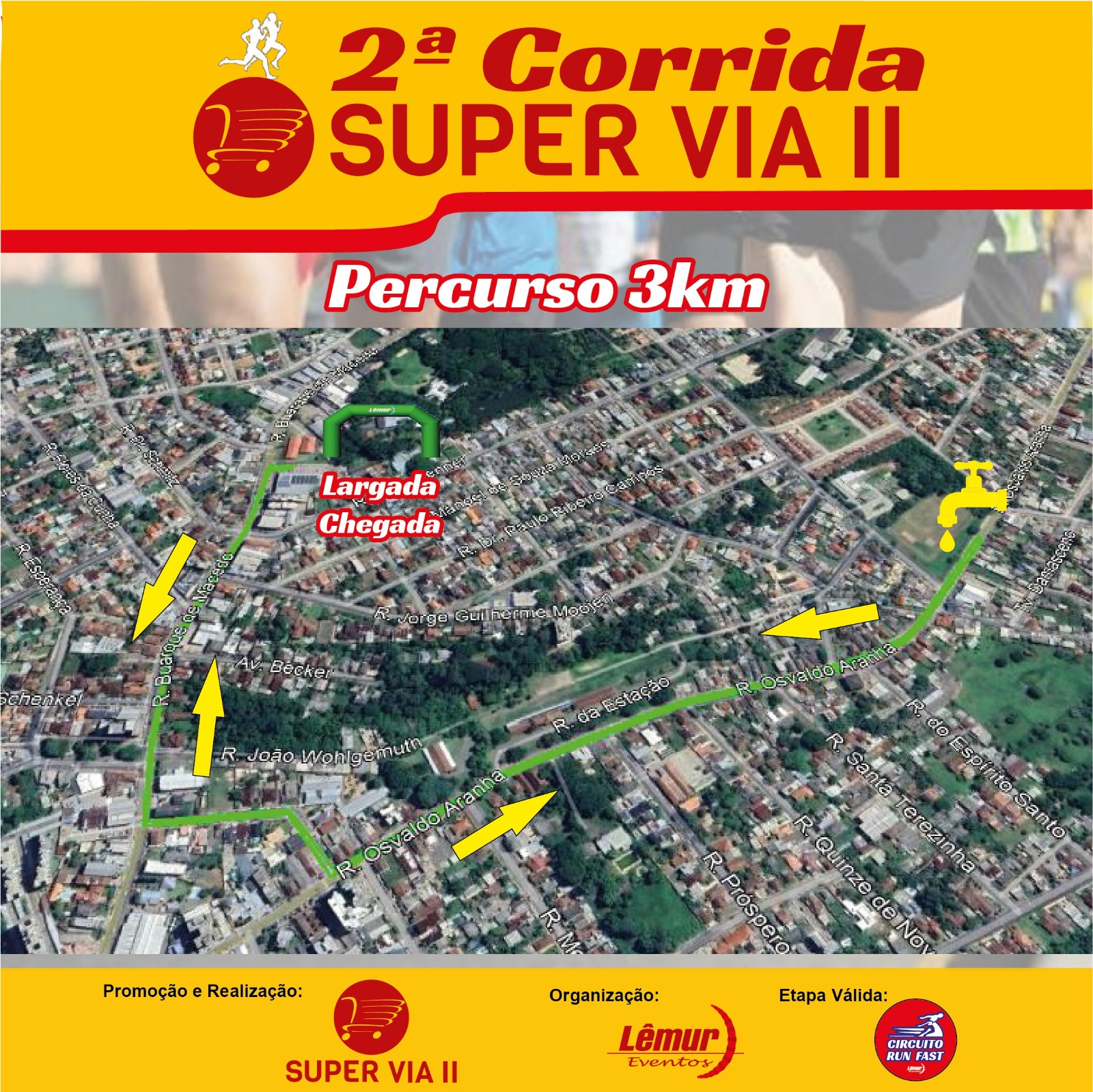 - Corrida de Rua de 3km e 6km; Corrida Infantil; Caminhada de 3km